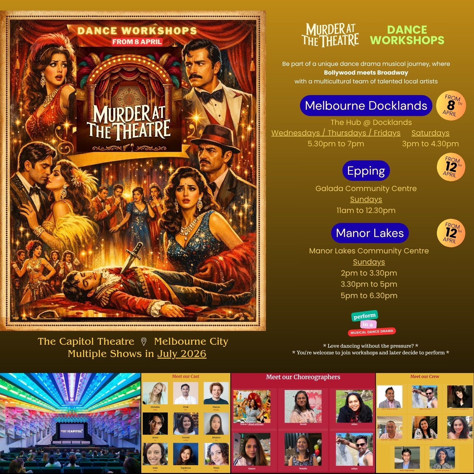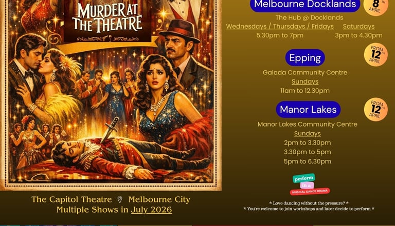 Dance workshops & rehearsals across various locations in Docklands, Epping & Manor Lakes.